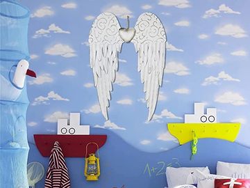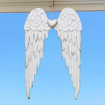 Metal Angel Wings Plaques with Heart - Decorative Angel Wing Sculptures Hanging Wall Art Antique Decor for Home Bedroom (1 Piece) 17"L x 10.5"W