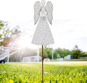 Metal Angel Garden Stakes Antiqued Decorative Angel Stake with Heart - Outdoor Iron Lawn Art Yard Sign Patio Backyard Decor 8"x40.5"