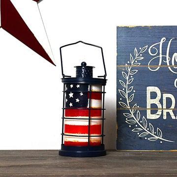 Decorative Candle Lantern Hanging Patriotic Decor, Rustic Metal Lantern Candle Holder American Flag Decorative Lantern Tabletop Lantern Indoor Outdoor Garden Patio July 4th Decoration 7.5"