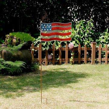 Patriotic Garden Stake Rustic Metal American Glory Flag Yard Stakes Indoor & Outdoor Decor for July Fourth 12.75"