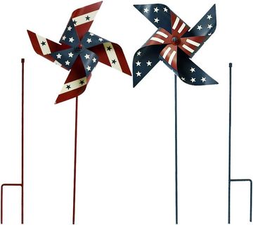 Metal Wind Spinner Patriotic Garden Stake Set - American Flag Windmill Yard Pinwheels July 4th Decorations for Lawn Party (Set of 2)