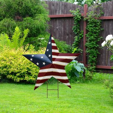 Metal Barn Stars Garden Stake Hanging Star Ornament American Flag Yard Sign USA Lawn Decoration Indoor Outdoor Patriotic Decor for July 4th Independence Day Memorial Day Party (22")