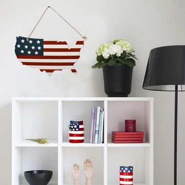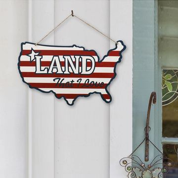 Metal American Flag Sign Patriotic Hanging Land Wall Art Decorative Iron Plaque Vintage Independence Day Decoration July 4th Door Decor (A) 14.6" x 12.5" x 0.1"
