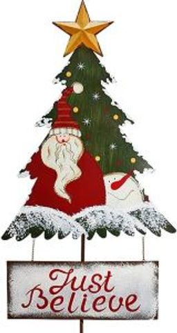 Metal Christmas Tree Garden Stake Snowman Santa Christmas Yard Sign Decorative Winter Holiday Xmas Decor for Lawn Pathway Driveway Patio Rustic Ornament (Just Believe) 11.4"x36.5"
